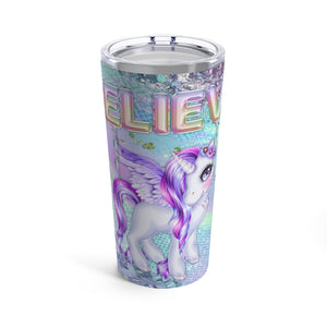 Glam Glitter Unicorn Stainless Steel 20oz Tumbler/ Pretty Purple Unicorn With Believe Foil Balloons Travel Mug Gift